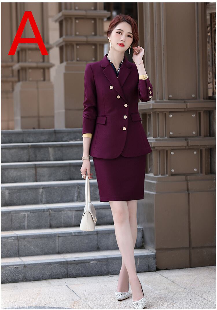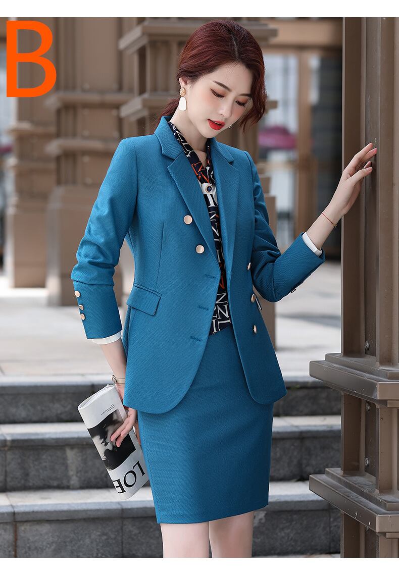 。デザインは、女性の美しさを引き立たせるシックなタイプなので、日常の脇役には最適なオフィススーツです。