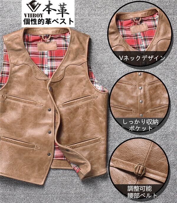 レザーベスト メンズ ベスト 本革 牛革 高級レザー ジレベスト チョッキ バイク用ベスト 通勤 カジュアル フォーマル 大きいサイズ 1222nvest015