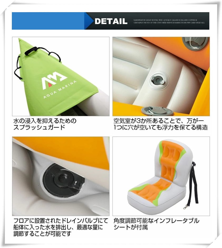 ■セット内容:本体、バッグ、フットポンプ、シート×1、パドル×1、フィン×2
