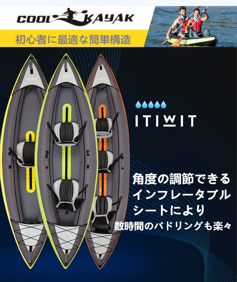 ●持ち運びや保管に便利な、1人/2人/3人乗りインフレータブル式カヤック。